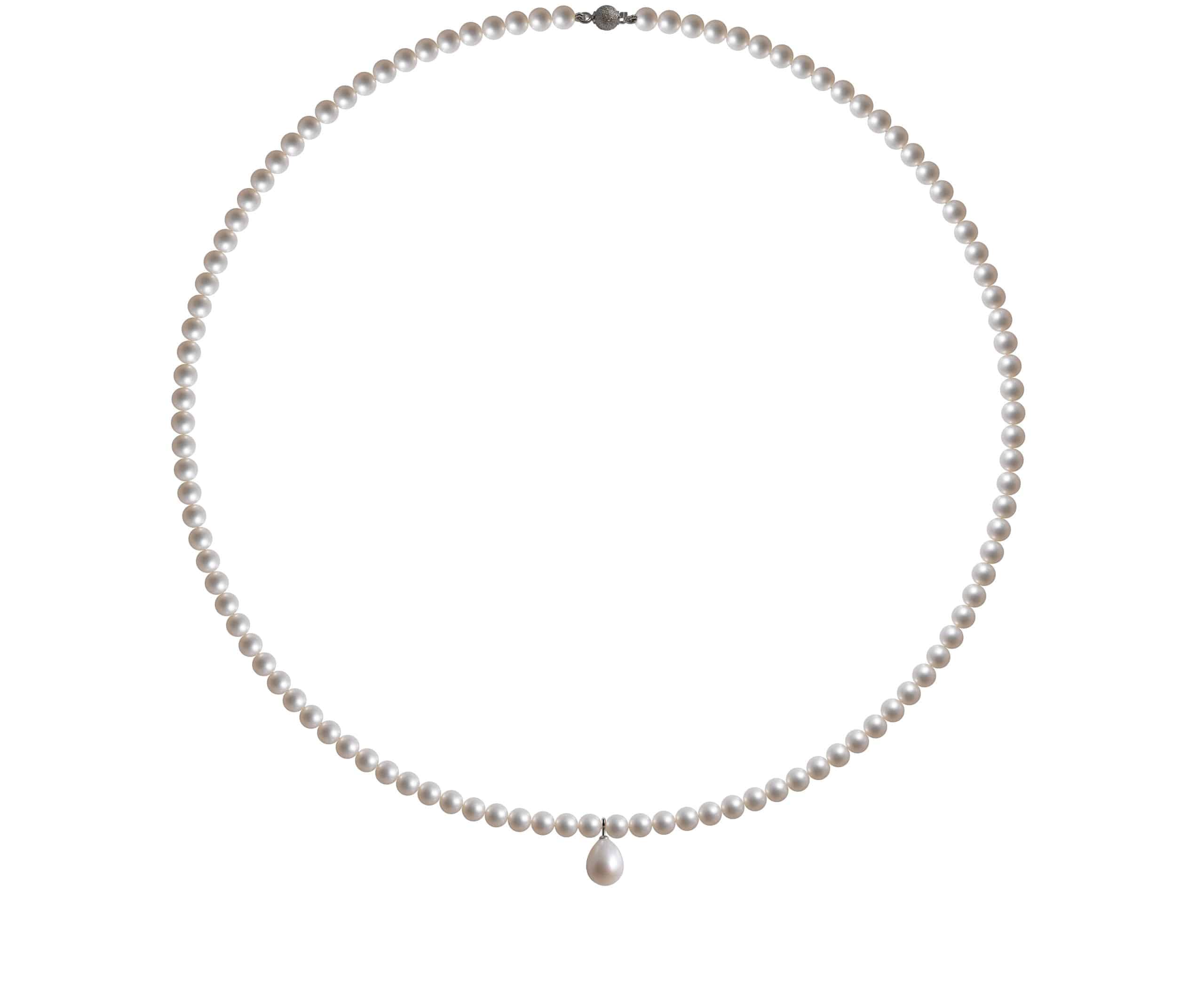 Le perle naturali, selezionate per la loro forma uniforme e la loro lucentezza, sono collegate in modo armonioso lungo il filo. La perla a forma di goccia al centro è il fulcro del gioiello, catturando la luce con ogni movimento e offrendo una lucentezza straordinaria. La chiusura in oro 18 kt non solo garantisce sicurezza ma aggiunge anche un tocco di eleganza raffinata.